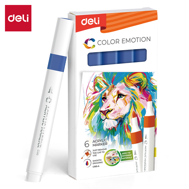 DELI Akrilni marker Color Emotion – namenjen je za precizno i kreativno izražavanje na različitim površinama, uključujući papir, karton, platno, drvo, metal, staklo i plastiku. Marker koristi akrilnu boju na bazi vode koja se brzo suši,